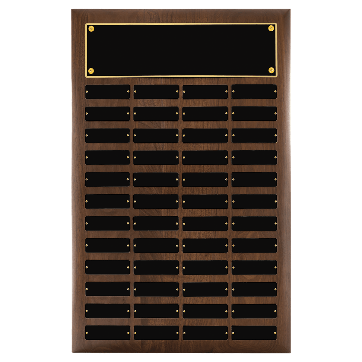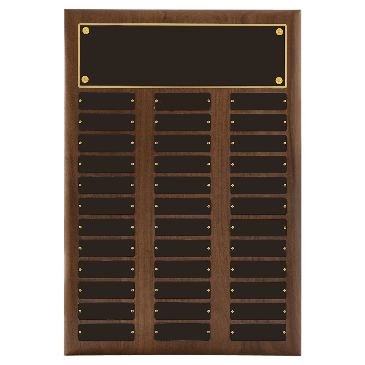 Your choice of American Walnut plaques in a variety of Plaque Sizes from 9" x 12" to 16" x 24" - Each with Black Brass Plates sized 1" x 3.25"