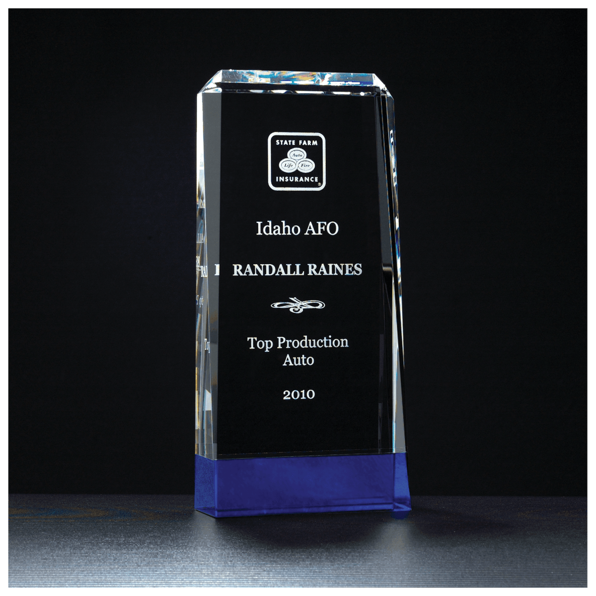 Crafted with expert skill and precision, the Premium Clear Crystal Trophy boasts a stunning Cobalt Blue Crystal Base, measuring 1.25"(Small), 1.4375"(Medium), or 1.625"(Large) in thickness. Prior to shipment, a proof will be emailed to you for approval.