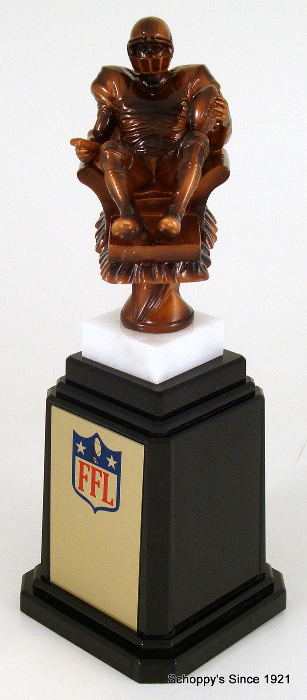 Whether you're the starting tailback or you start on your tail back on the couch you're sure to love the Recliner Perpetual Fantasy Football Trophy - Large. Your league's winner will be able to proudly display this trophy all year long.