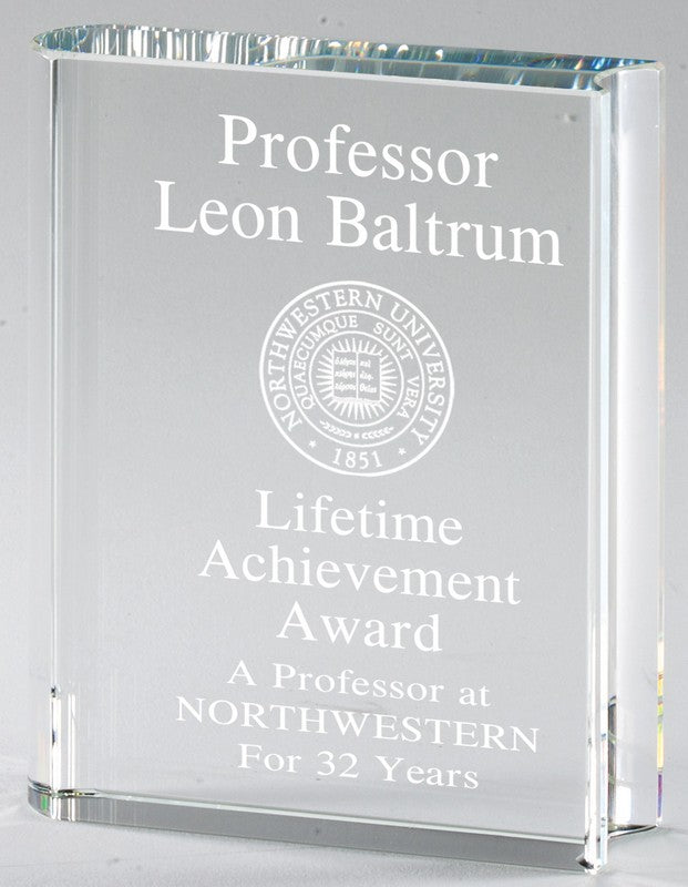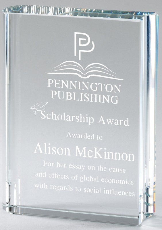 This exquisite crystal Book award is perfect for honoring scholars, teachers, or graduates who have achieved academic excellence.